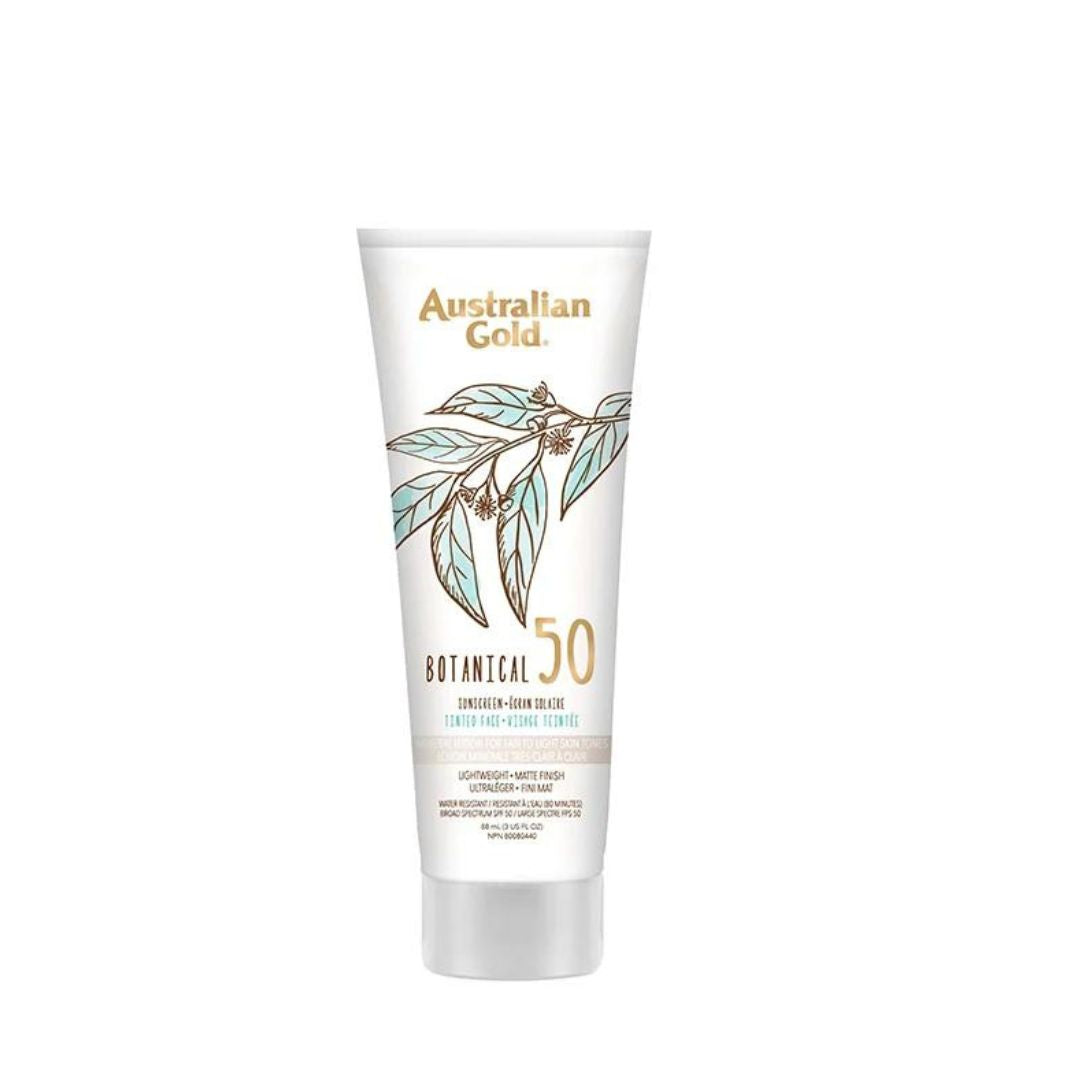 The Australian Gold® Botanical SPF 50 Tinted Face Mineral Lotion is more than just powerful sun protection – it’s gentle care for your skin. This non-chemical sunscreen lotion delivers a refreshingly luxurious, powdery-clean feel, while the subtle tint seamlessly blends into different skin tones. Specially designed for sensitive facial skin, this BB cream won’t clog pores and is fragrance free. Rich in vitamins and antioxidants from botanical ingredients, it allows you to enjoy the sun protected from both UVA and UVB rays, and water resistant for up to 80 minutes.