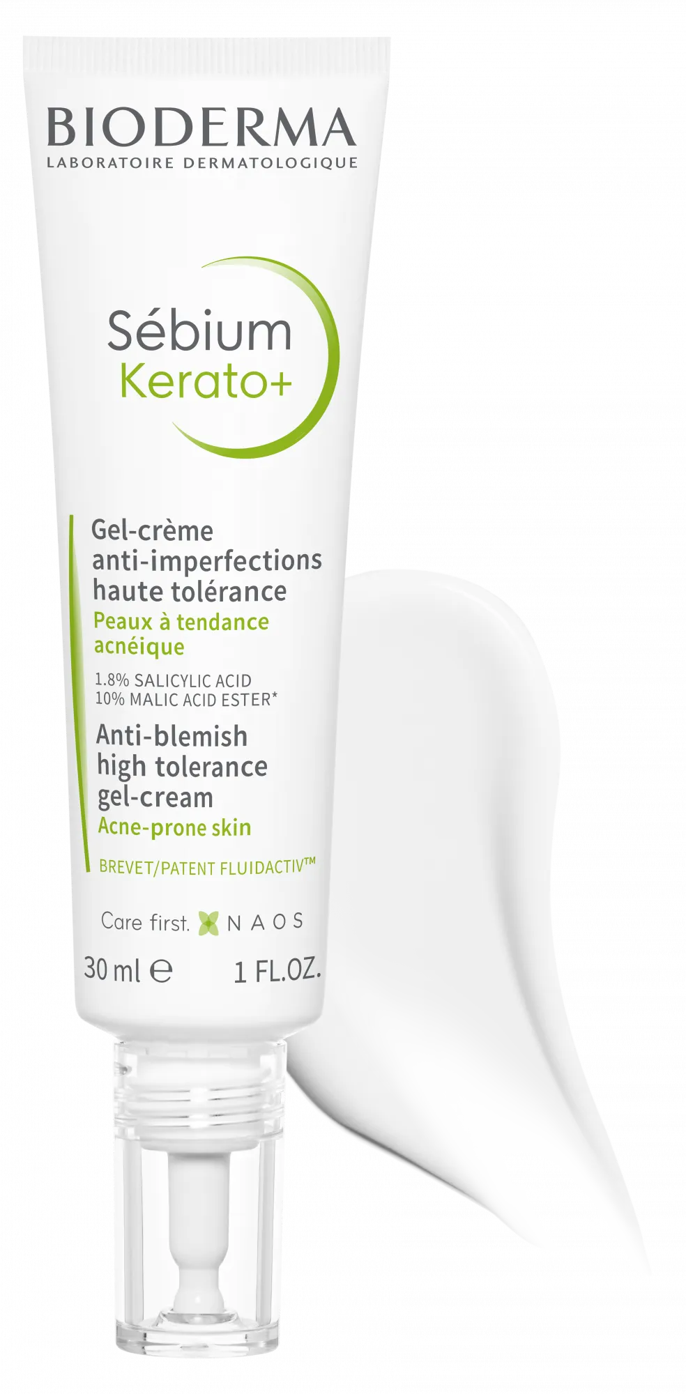 Sébium Kerato+ works deep into the pores to clear breakouts, reduce marks and balance oil production to prevent recurrence. With a duo of AHAs & BHAs, the skin is left mattified, hydrated and skin comfort is preserved. Salicylic acid refines skin texture and assists in unblocking the pores, while malic acid ester works deep into the oil glands to remove dead skin and thickened oil, while balancing oil flow and hydrating the skin. The combination of active ingredients with strong antioxidant power make up the Fluidactiv™ patent to biologically regulate sebum quality and durably prevent blocked pores.