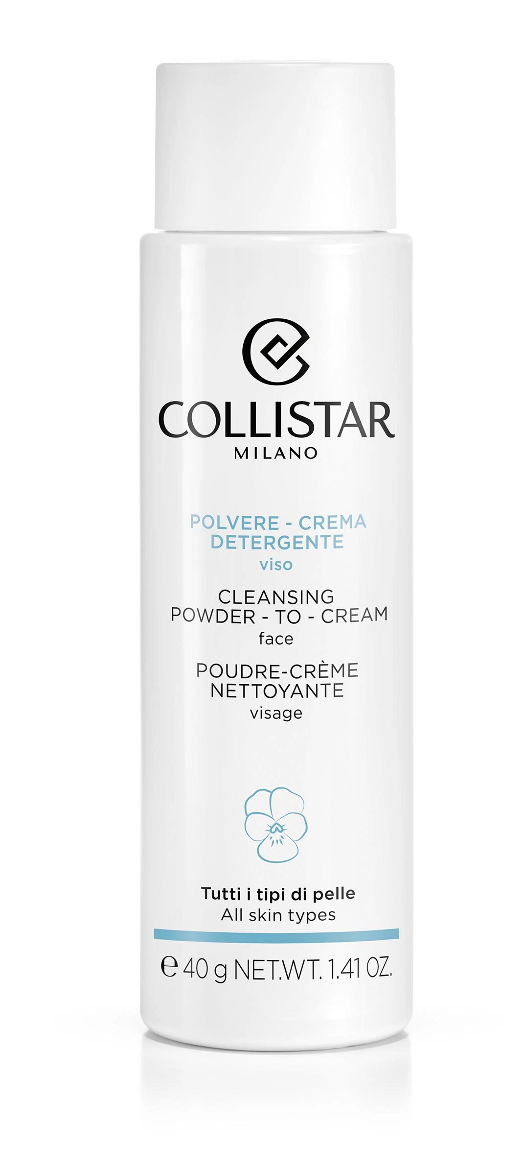 Cleanses skin perfectly, removing traces of make-up, pollutants and impurities. This waterless powder turns into a cream-mousse in contact with water. Formulated for optimum tolerance, even for sensitive skin, and enriched with balancing, regenerating Italian Wild Pansy plus Inulin, a natural prebiotic that respects the skin’s microbiome.