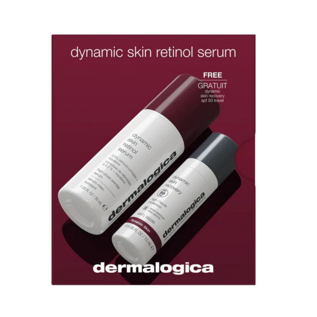 Our multi-benefit broad spectrum daily moisturizer with dynamic benefits hydrates, smooths, and protects skin against UVA and UVB rays. Dynamic Skin Retinol Serum features a 3.5% retinoid complex targeting wrinkles and working to retexturize skin, minimize the appearance of pores, and even skin tone.