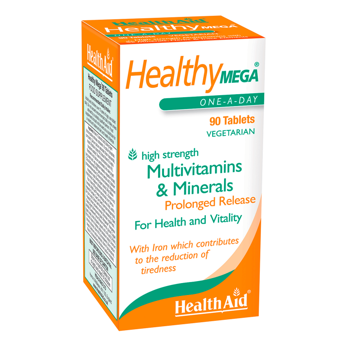 Vitamin C (ascorbic acid), Bulking Agent (microcrystalline cellulose, maltodextrin, di-calcium phosphate, corn starch), Calcium (calcium carbonate), Niacin (niacinamide), Inositol, Riboflavin (vitamin B2), Natural Vitamin E (d-alpha tocopherol acetate), Thiamin Hydrochloride (vitamin B1), Pantothenic Acid (calcium pantothenate), Anti-caking Agent (veg. stearic acid, veg. magnesium stearate, magnesium silicate), Citrus Bioflavanoids, PABA (para amino benzoic acid), Stabiliser (crosscarmellose sodium), Choline (choline bitartrate), Magnesium (magnesium oxide), Binding Agent (acacia), Silica, Betaine Hydrochloride, Potassium (potassium chloride), L-Glutamic Acid, Rutin, Vitamin B6 (pyrodixine hydrochloride), Iron †(ferrous fumarate), Alfalfa Leaf Powder (medicago sativa), Kelp, Lecithin, Hesperidin Complex, Guar Gum Seed (cyamopsis tetragonoloba), Zinc (zinc oxide), Golden Seal Root (hydrastis canadensis), Papain, Horsetail Extract (equisetum arvense), Bromelain, Apple Pectin, Glazing Agent (pharmaceutical glaze), Manganese** (manganese sulphate), Sweetener/Flavour Enhancer (mannitol, glycine), Copper (cupric oxide), Acidity Regulator (aspartic acid, citric acid), D-Biotin, Folic Acid, Vitamin A Acetate, Iodide (potassium iodide), Chromium (chromic chloride), Vitamin B12 (cynocobalamin), Boron (sodium borate), Selenium (sodium selenate), Vitamin K (phytonadione), Vitamin D (cholecalciferol), Molybdenum (sodium molybdate).