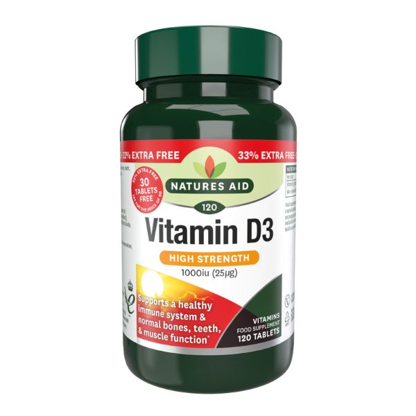 NATURES AID VITAMIN D3 1000IU X 120 TABLETS 33% EXTRA FREE