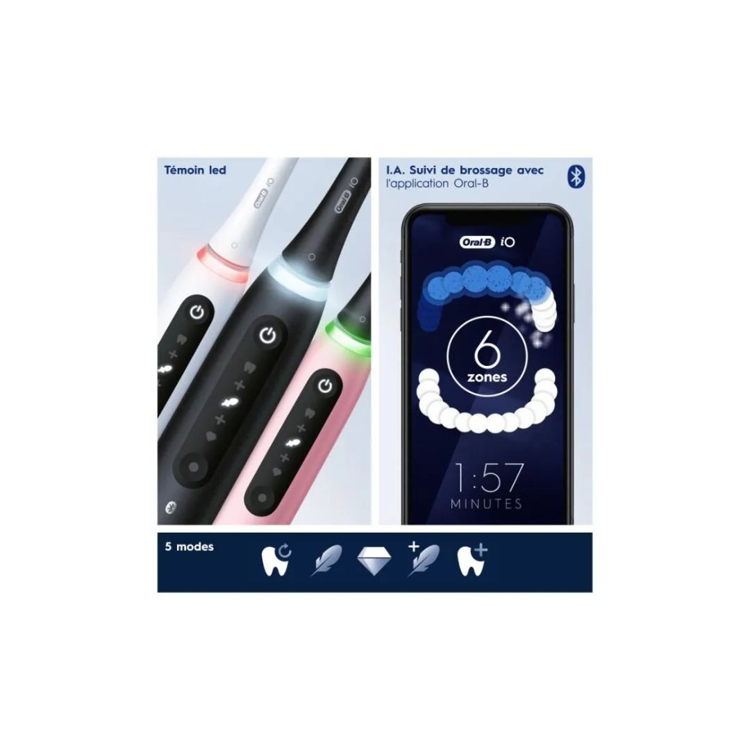 Oral-B BEST CLEANING with REVOLUTIONARY iO TECHNOLOGY to offer a professional cleaning feeling and smooth brushing Combines the exclusive Oral-B round head with soft microvibrations for a feeling of freshness and cleanliness in the mouth and 100% healthier gums in a week compared to a normal manual toothbrush 5 MODES to Customize.