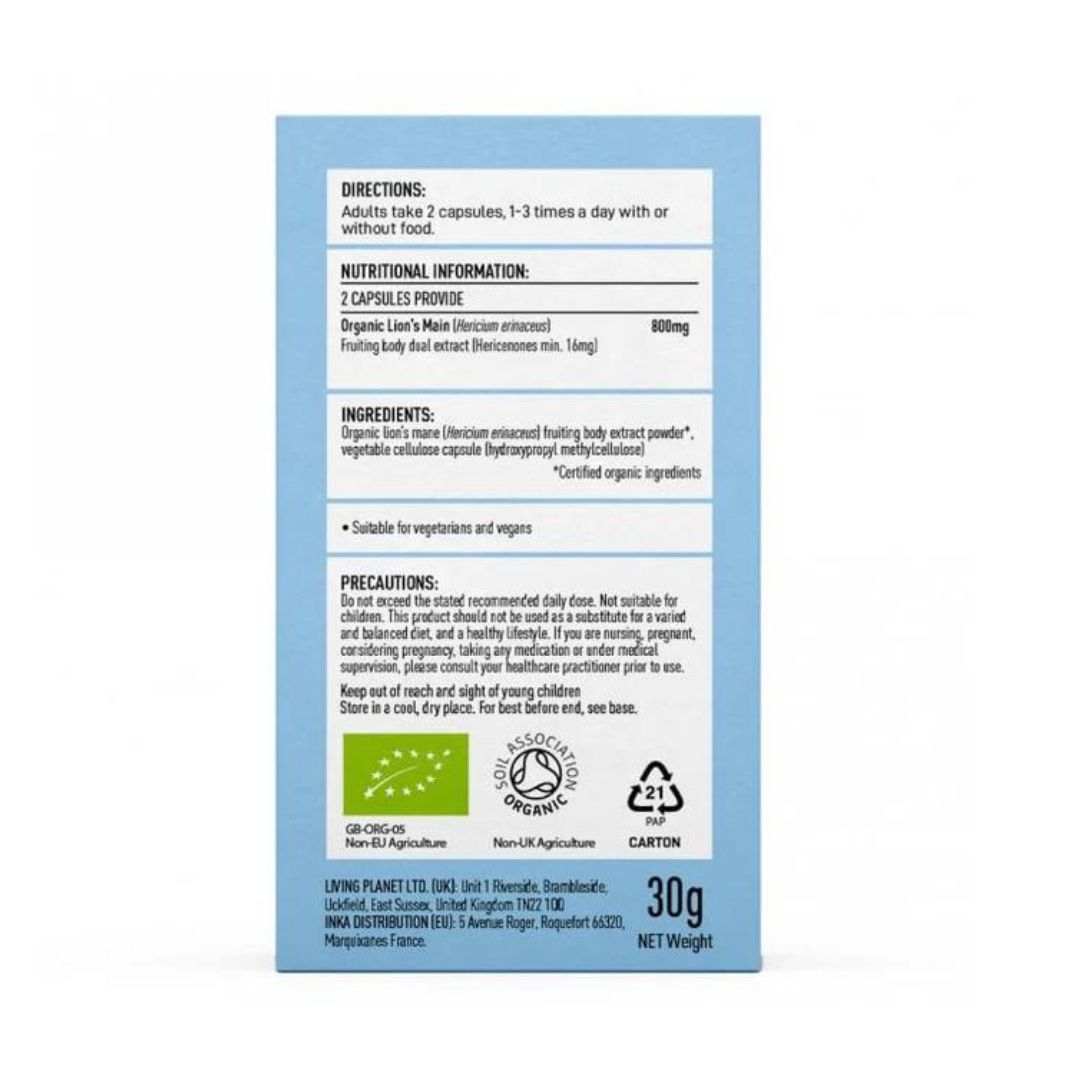 ORGANIC LIONS MANE FOCUS MUSHROOMS FOR LIFE 60 CAPS