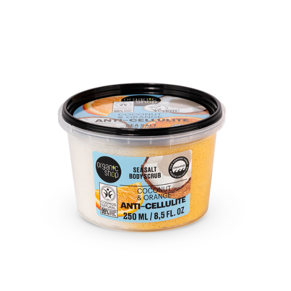 ORGANIC SHOP 05000E ANTI-CELLULITE SEA SALT BODY SCRUB. COCONUT & ORANGE, 250 ML