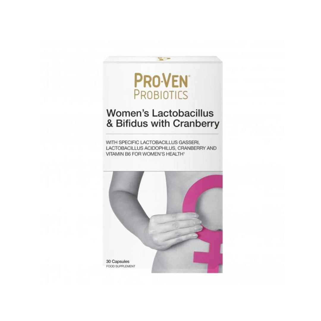 ProVen Womens Lactobacillus & Bifidus with Cranberry contains three Lactobacillus strains – two Lactobacillus acidophilus strains and Lactobacillus gasseri, which is a key part of the vaginal flora.