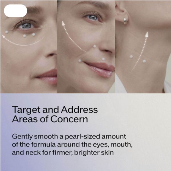- Take a pearl-sized drop onto fingertips and gently smooth onto areas of concern, such as around the eyes and the mouth, on the neck, and on wrinkles.